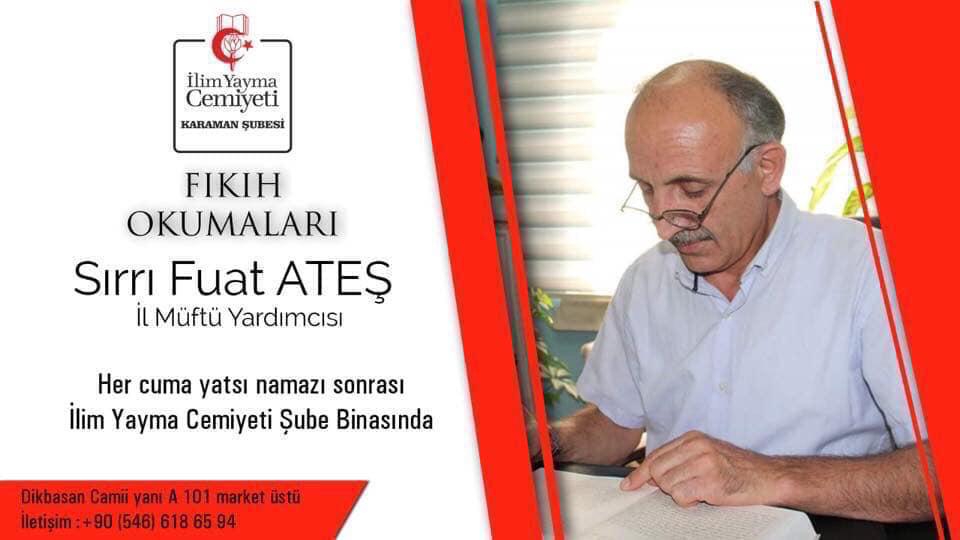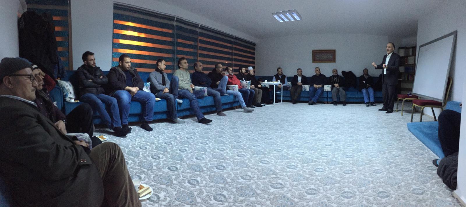Her hafta Cuma akşamı yatsı namazını müteakiben şube binamızda İl Müftü Yardımcısı Sırrı Fuat Ateş hocamızın anlatımlarıyla fıkıh okumalarını icra ediyoruz. Hocamızın fıkıh ilminden her hafta birbirini takip eden farklı bir ders mahiyetinde işliyor, karşılıklı sorularla cevaplanan ve çay muhabbetimizle demlenen sohbetimiz karşılıklı fikir alışverişlerinin ardından son buluyor.