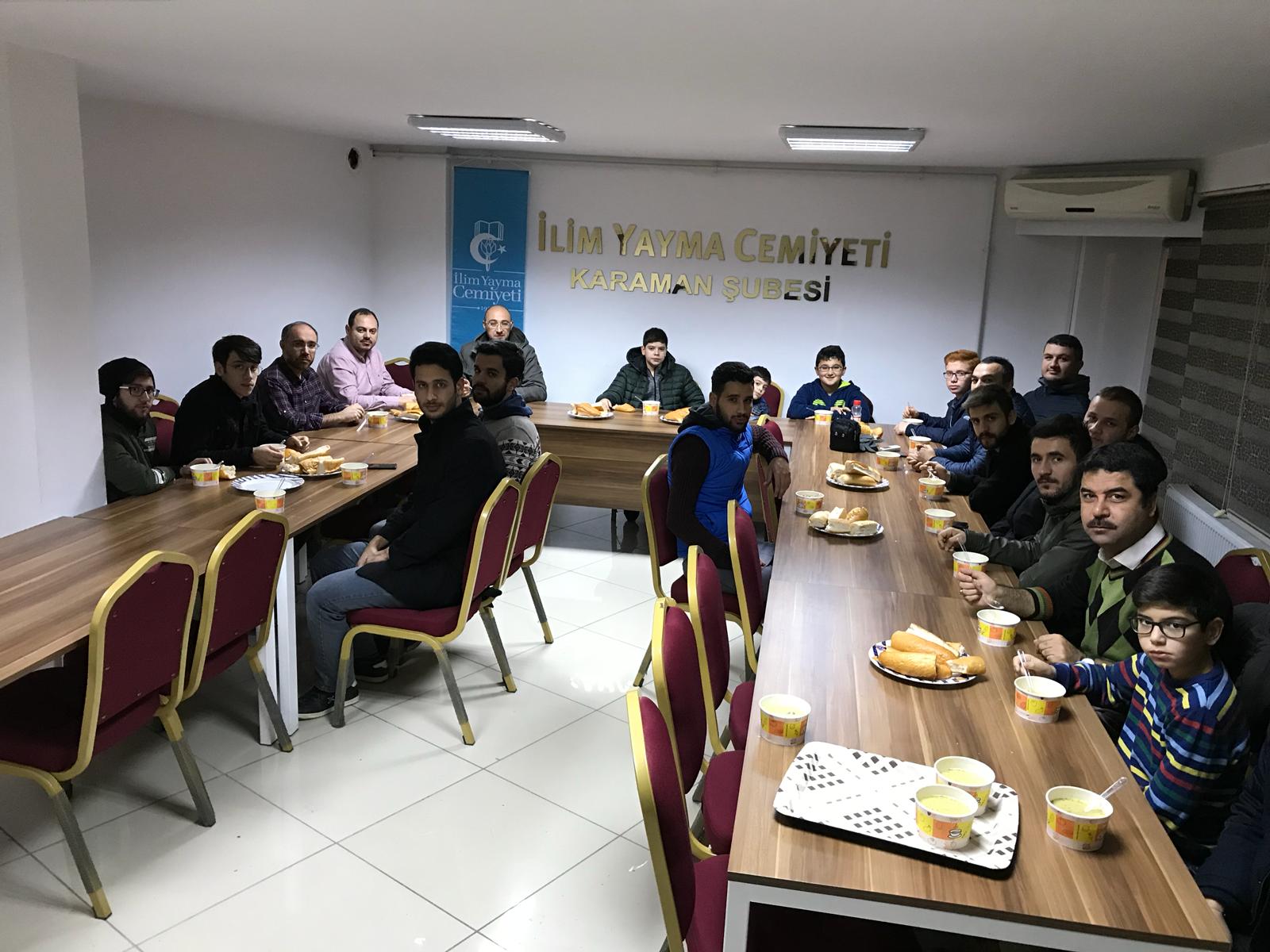 Her Hafta Karamanımızın farklı camilerinde şube yönetimimiz ve gençlerimizle sabah namazını cemaatle eda edip sonrasında şube binamıza geçerek kahvaltı ikramımızla gençlerimizle bir arada bulunup hasbihal ediyor, çay muhabbetinden sonra programımızı sonlandırıyoruz.