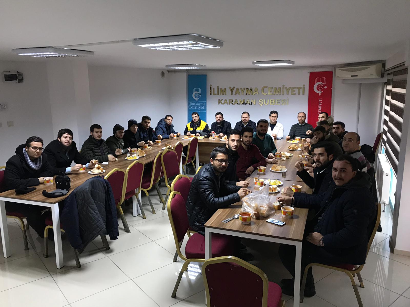 Her Hafta Karamanımızın farklı camilerinde şube yönetimimiz ve gençlerimizle sabah namazını cemaatle eda edip sonrasında şube binamıza geçerek kahvaltı ikramımızla gençlerimizle bir arada bulunup hasbihal ediyor, çay muhabbetinden sonra programımızı sonlandırıyoruz.